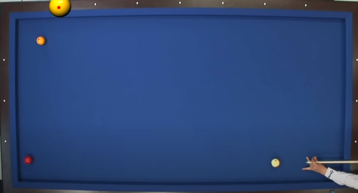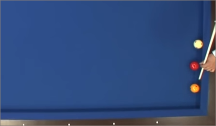 3쿠션에서 아래와 같이 공이 배치되어 있는 경우입니다.