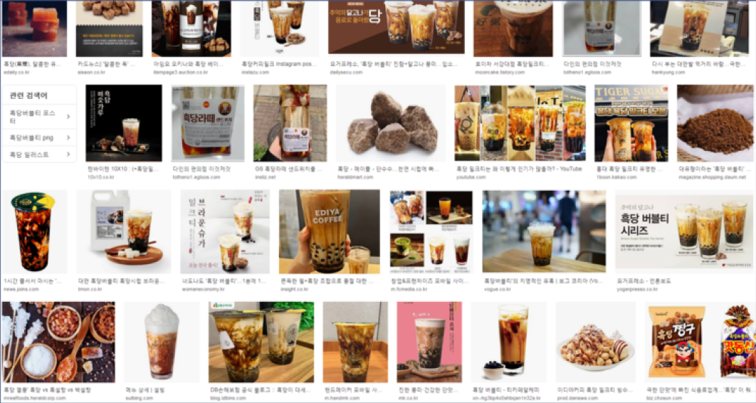 흑당으로 검색해보니 나타나는 검색결과는 tea 가 대부분이고