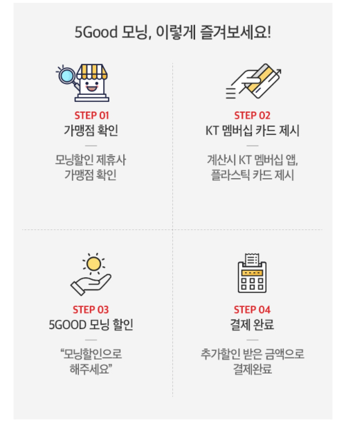 kt 이용하는 사람이라면 5굿 모닝할인을 받을 수가 있는데요!