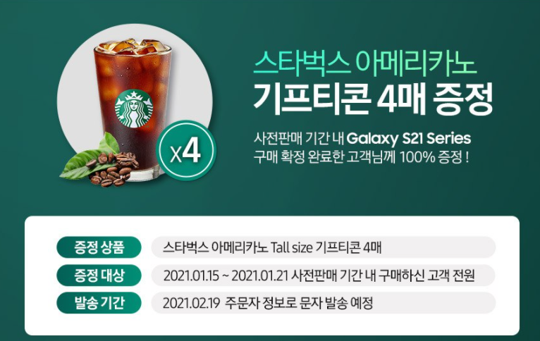 첫번째. 스타벅스 아메리카노 키프티콘 4매 증정
