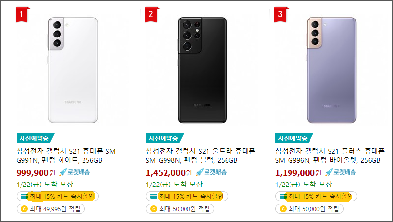 그외에 쿠팡에서 갤럭시 s21 시리즈 사전예약시