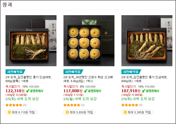 할인해서 판매하고 있고 청과는 2월9일 도착 보장이네요!