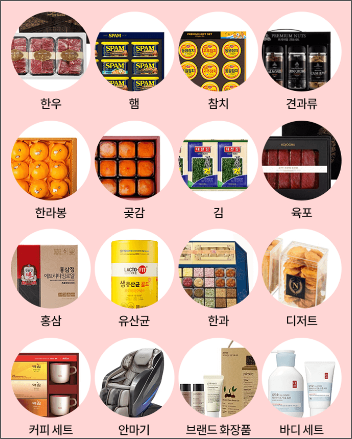 홍삼, 유산균, 한과, 디저트 , 커피세트, 안마기, 바디세트