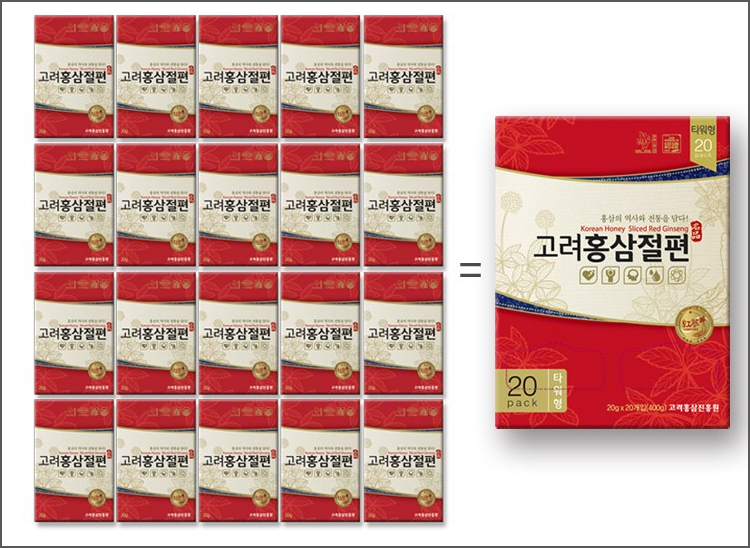 위 이미지처럼 한박스속에 20팩이 들어 있어요!