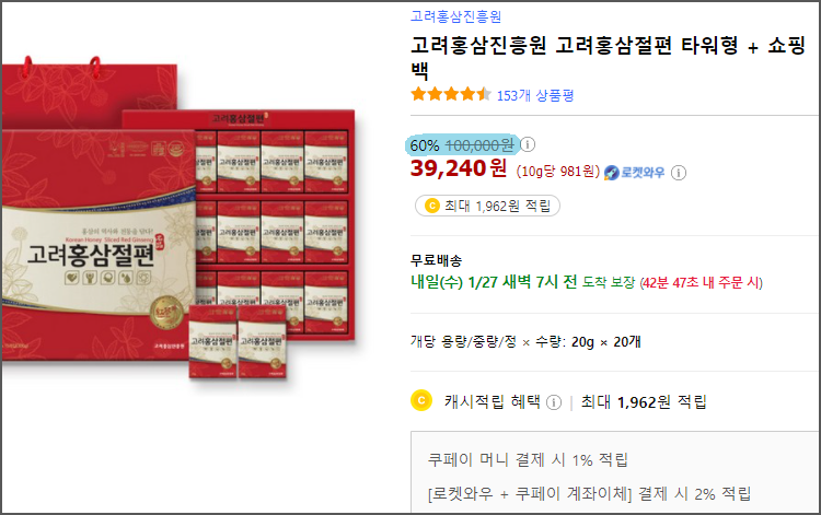 그런데 홍삼제품을 60% 할인하는 것은 정말