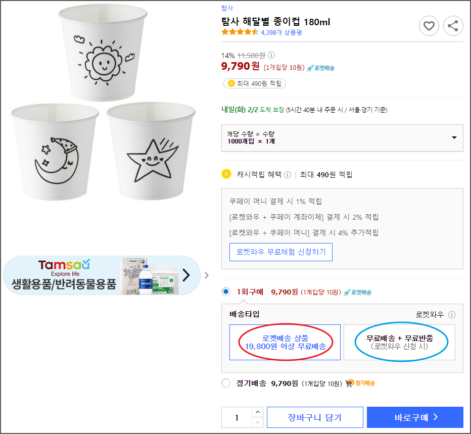 1만원안되는 종이컵 사는데 어디서 무료배송으로 살 수 있겟어요!
