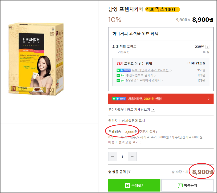 무료배송으로 프렌치카페 커피믹스를 구매할 수 있었던것입니다.
