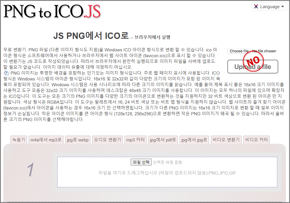 홈페이지 주소입니다. https://png2icojs.com/kr/