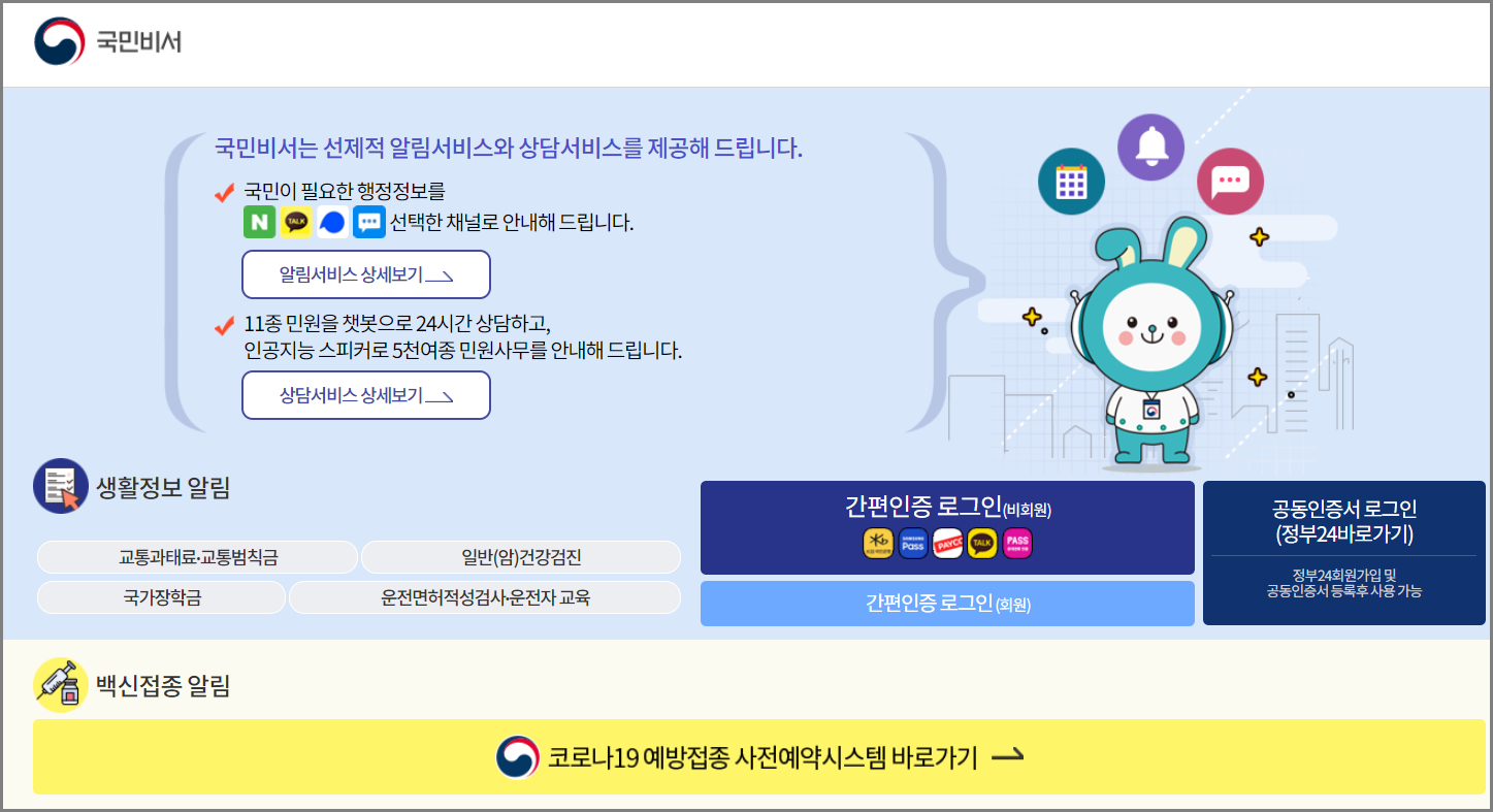 정부24의 국민비서는 선제적인 알림 서비스를 제공하기 위한 서비스인데요~