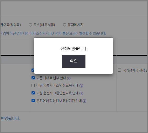 알림서비스 신청이 완료되었습니다.