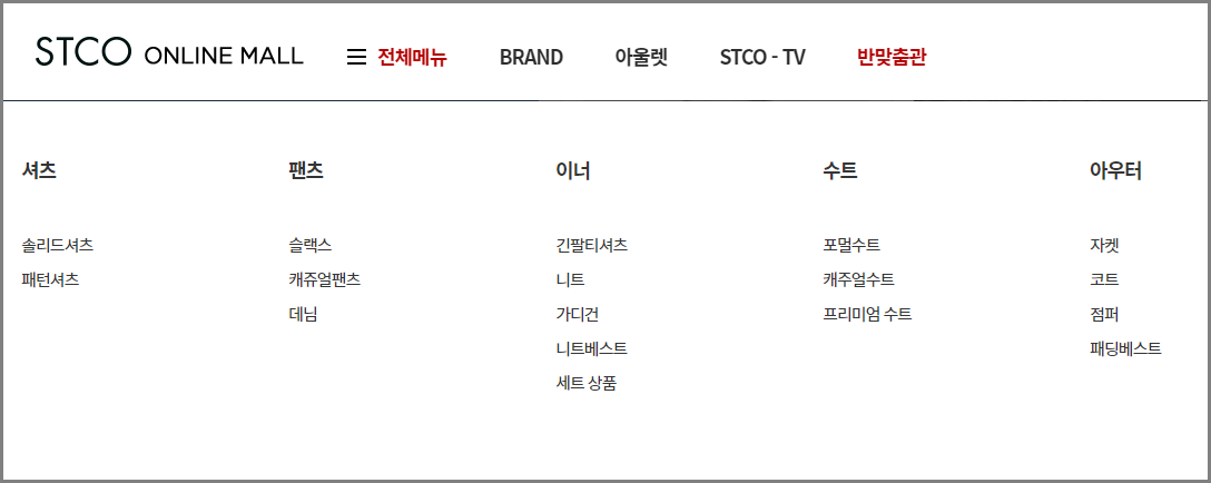 30대 40대 남성 코디 사이트 브랜드 패션몰 STCO