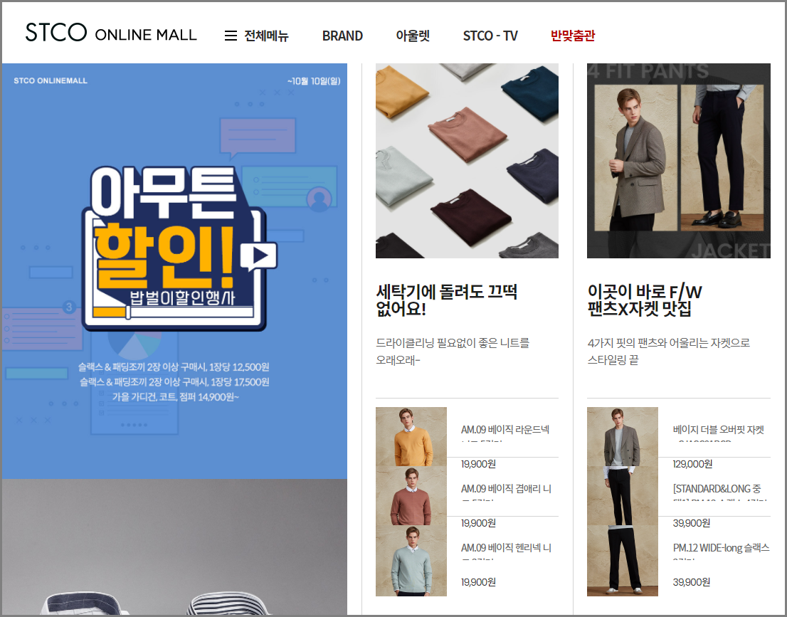 남성 코디사이트 STCO 온라인 몰 홈페이지에 접속을 하면