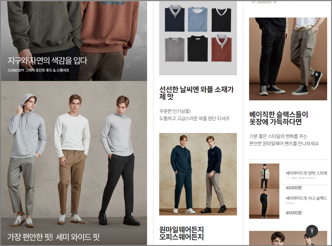 아래쪽으로 스크롤을 하면 다양한 코디를