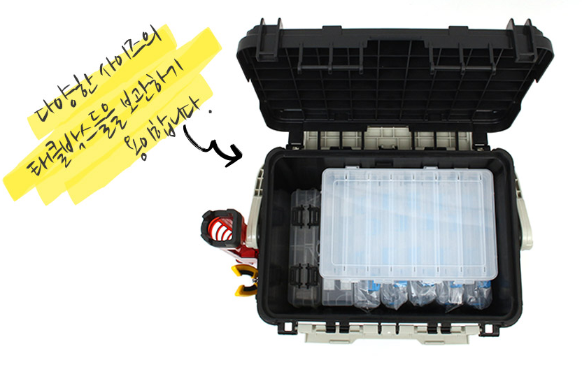 싸파 미라클 태클박스는 뚜껑의 활용도와 편리성이 장점입니다.