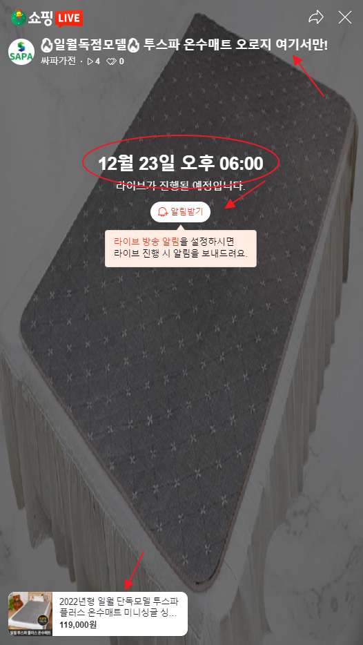단 가격은 현재 판매되는 가격이고 라이브방송이 시작되면