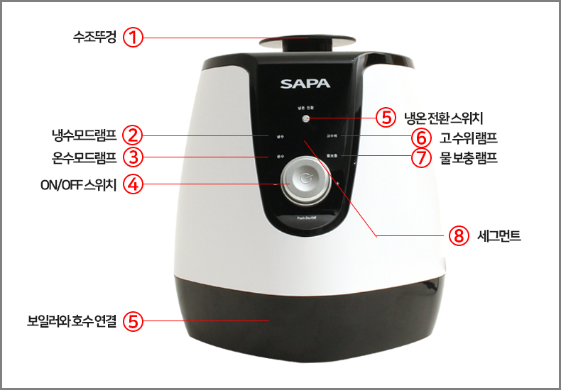 상단은 물을 넣는 곳입니다. 뚜껑을 열고 주입하는 방식입니다.