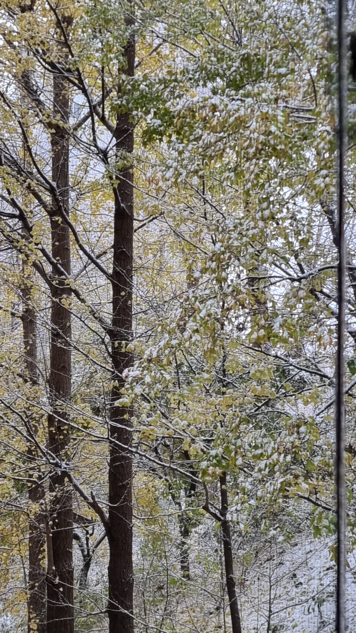 노란 은행잎도 그래도 달려 있는데 눈이 소복히 쌓여 있는